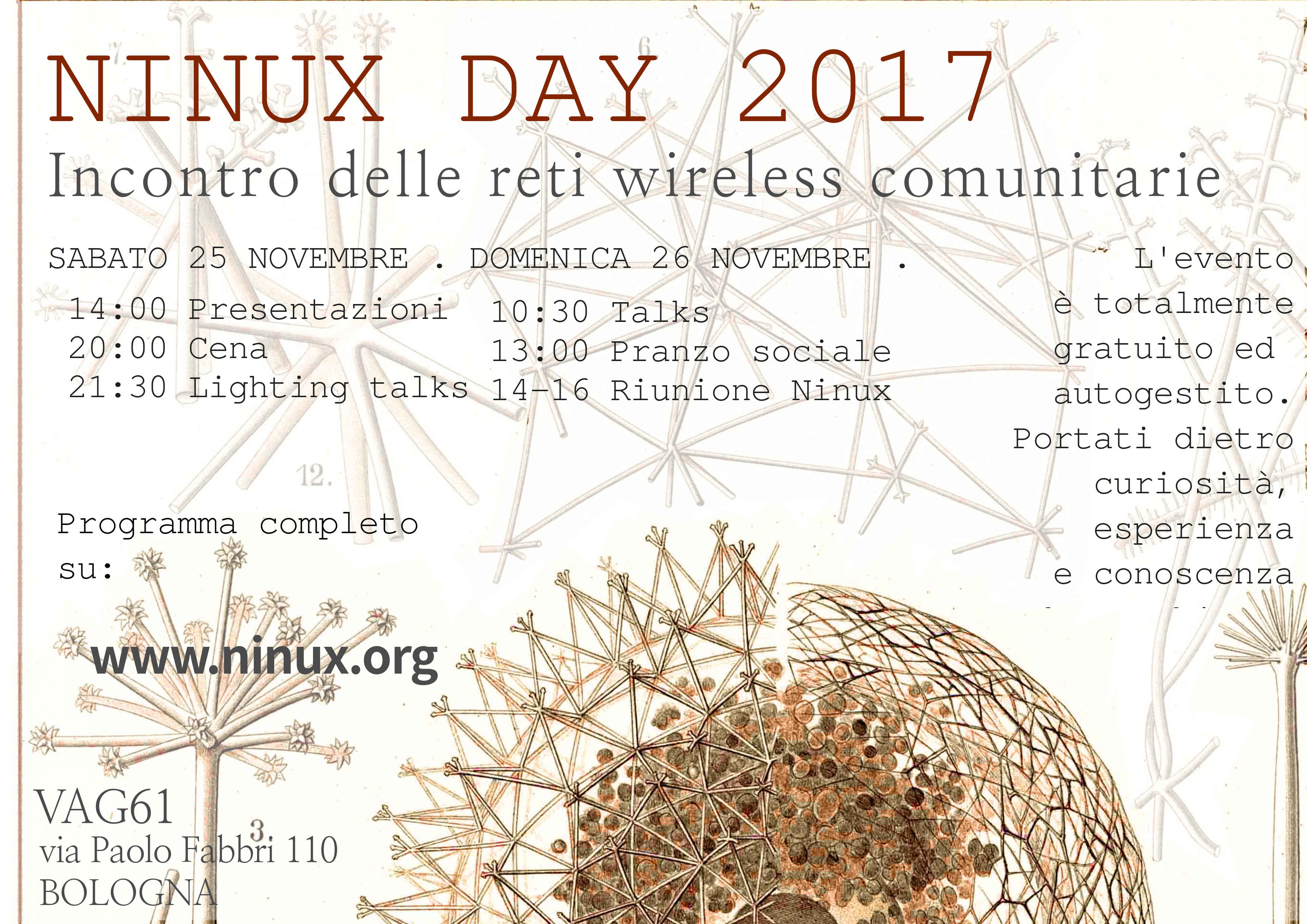 > http://wiki.ninux.org/NinuxDay2017?action=AttachFile&do=get&target=ProgrammaNINUday17_vbassa.jpg